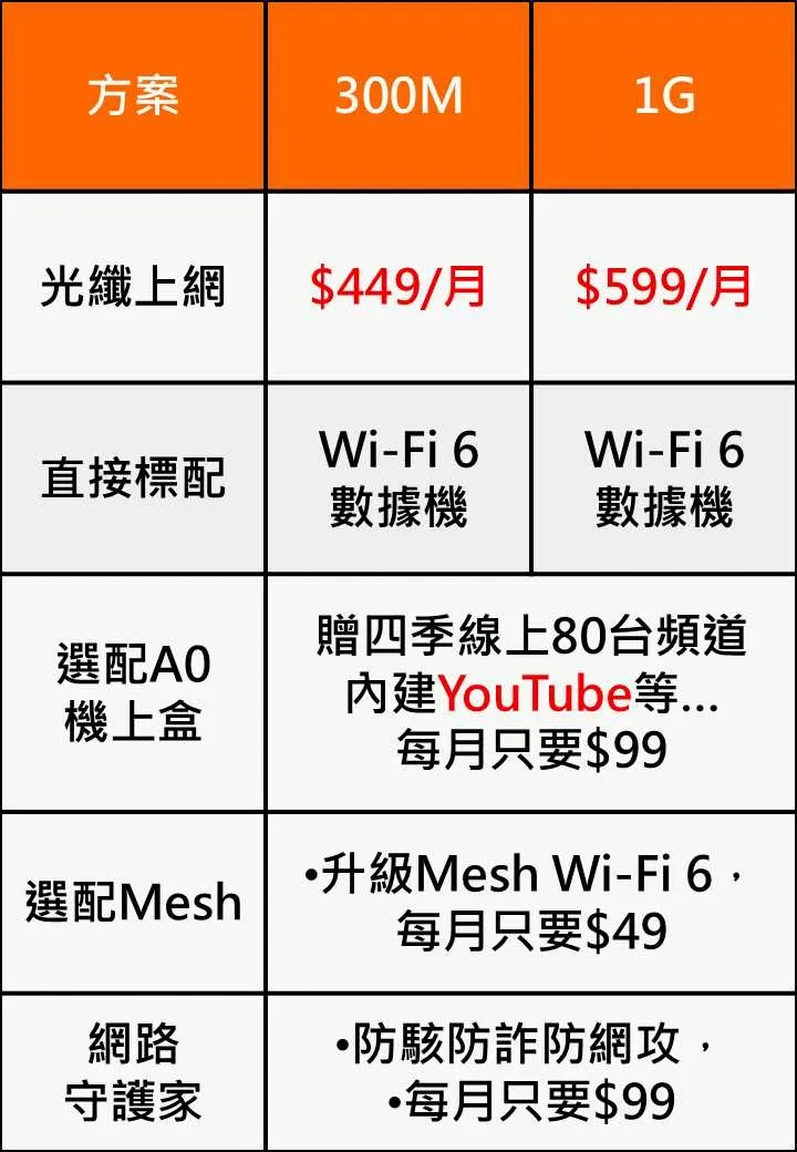 方案資費表|即日起至11月底|光纖上網|花蓮光纖上網